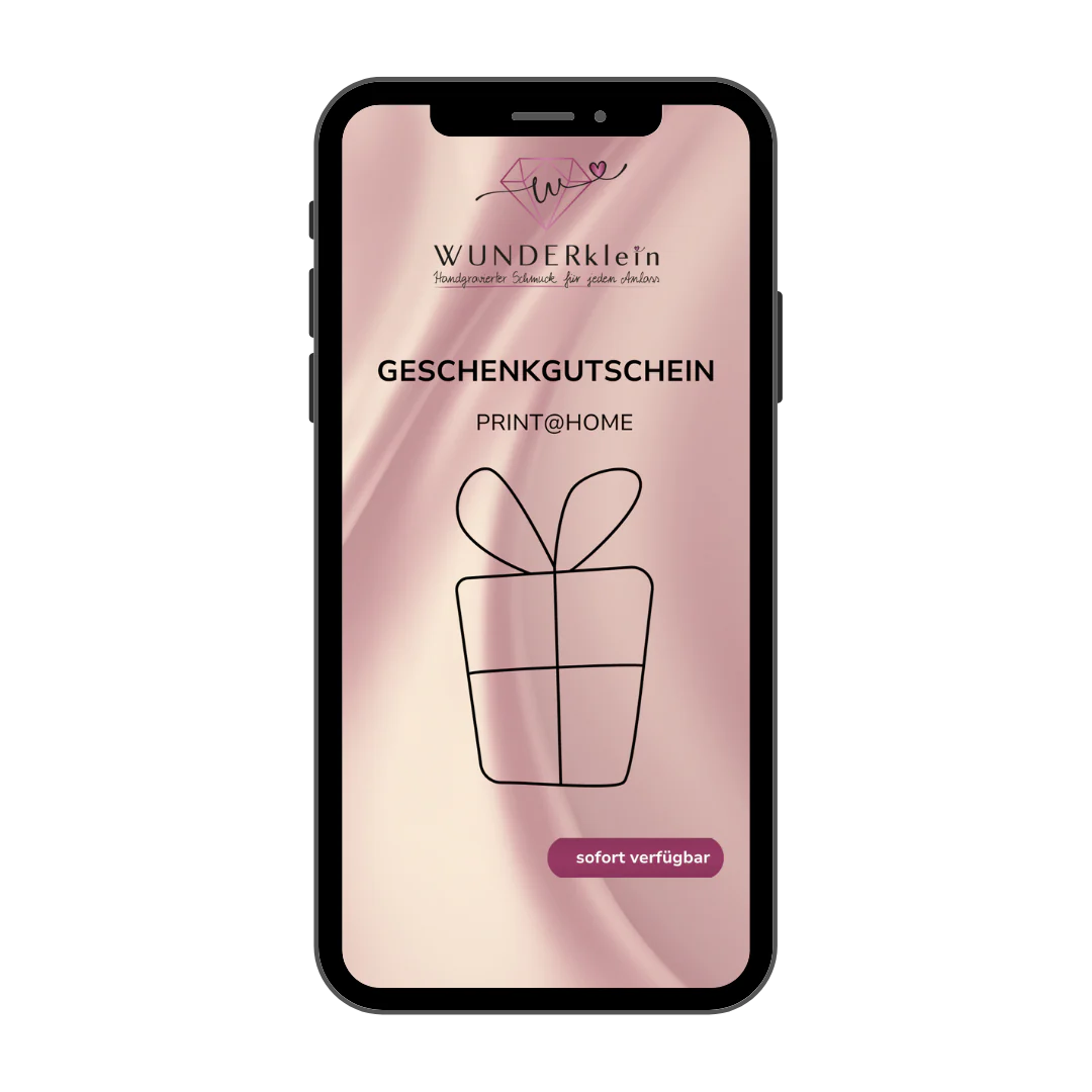 Last Minute muss nicht unpersönlich sein. Mit dem WUNDERklein Gutschein schenkst du Freude, die bleibt – und die Gravur macht’s am Ende wirklich einzigartig. Sofort per E-Mail, direkt zum Ausdrucken.