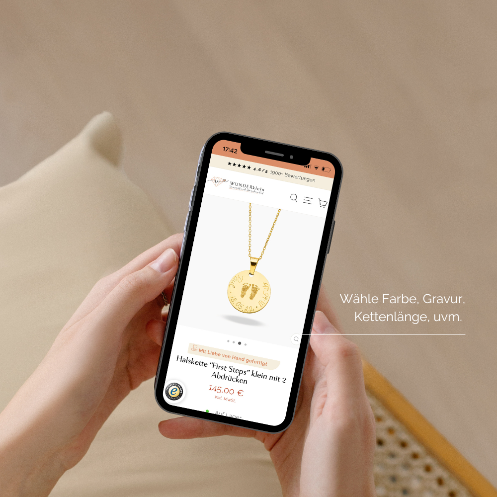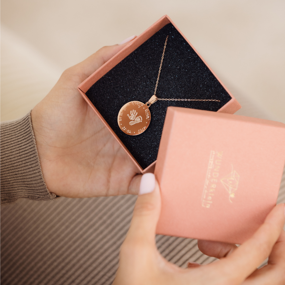 “Oft sind es die kleinsten Füße, die die größten Spuren hinterlassen” Und weil genau diese kleinen Füße so besonders und einzigartig wie dein kleines Wunder selbst sind, kannst du den ersten Fußabdruck deines Babys oder auch aktuelle Abdrücke von Hand oder Fuß mit der neuen First Steps Kollektion immer bei dir tragen. Ergänze dieses besondere Schmuckstück mit unserer liebevollen Handgravur und kreiere ein Schmuckstück so einzigartig wie die Liebe zu deinem Kind.