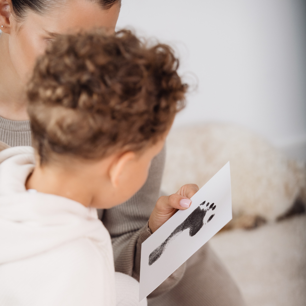 Wenn du noch keine Abdrücke hast: Lege unser Abdruckset in den Warenkorb deiner Bestellung. Du erhältst das Set auf dem Postweg und kannst ganz einfach und tintenfrei wunderschöne Abdrücke abnehmen. Wir schicken dir eine Email, wo du später deine Abdrücke ganz einfach hochladen kannst.