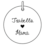 Der Abdruck wird immer mittig platziert. Dein Wunschtext kann mittig unter dem Abdruck oder außen am Rand entlang des Plättchens graviert werden.